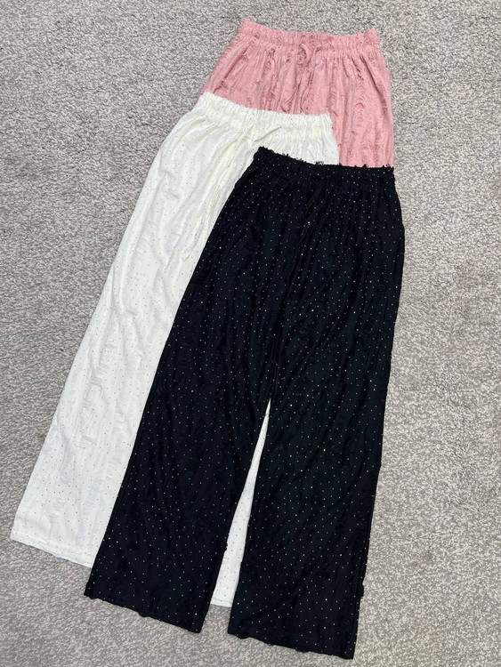 شلوار زنانه فول نگین زاپدار وارداتی مناسب استفاده ی روزانه و مهمانی هست خیلی کیفیت و جنس خوبی داره ریزش نگین نداره و جنس کار نخی و زاپدار و فول نگین و اصلا بدن نما و مشخص نیست چون داخل کار تمام آستر کار شده و سایز مدیوم موجوده که مناسب سایز 36تا40
